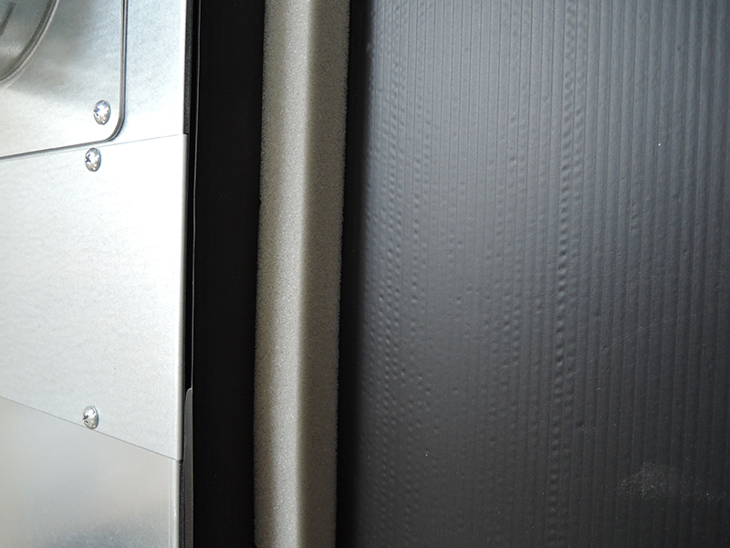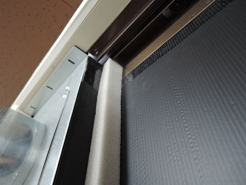 今回の施工場所では、どうしてもサッシ窓の左端(窓ガラスが外側で遠い方)に設置する必要があったので、目貼りの方法として、ダクトウォールの側面にプラダンを貼付けて、そのプラダンと窓ガラスの間にスポンジテープで目貼りする方法で施工しました。